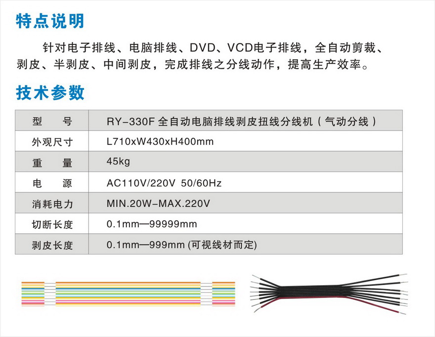RY-330F 全自动电脑排线剥皮扭线分线机