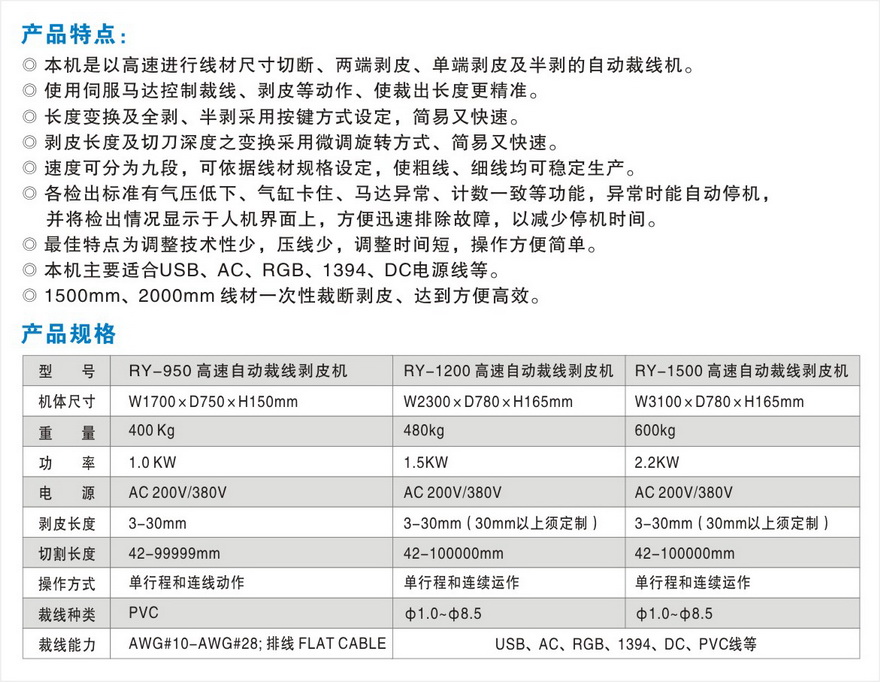 RY-950 高速自动裁线剥皮机